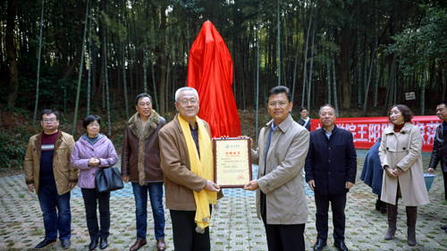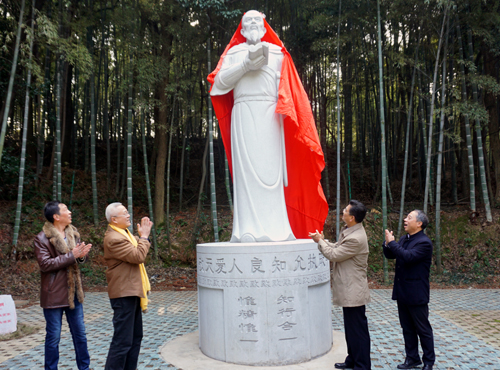 在热烈地掌声中,甘筱青、皇甫金石、刘晓东等领导和嘉宾一同为王阳明雕像揭幕。