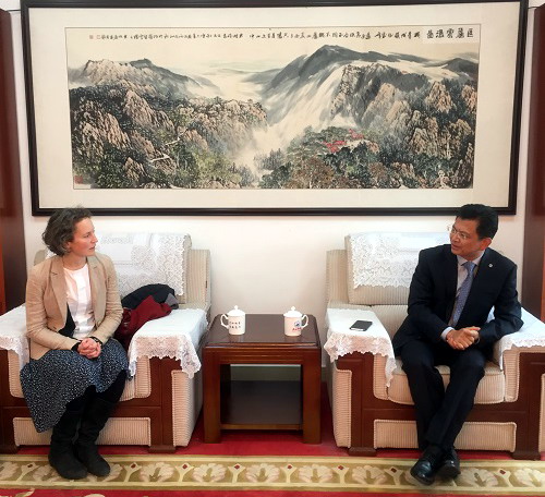 11月28日,英国剑桥大学可持续领导力研究所课程总监贝朗思女士(Lucy Bruzzone)z在罗来武教授的陪同下来永利yl23411集团官网访问交流,刘晓东校长在行政楼312会议室热情会见了客人,鄱阳湖生态经济研究中心副主任汤明、科研处副处长宋士华和国际合作交流处副处长王贤淼参加了会见。