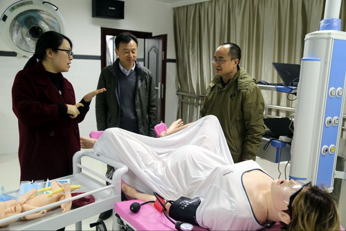 成都大学唐毅谦副校长致辞,他非常感谢九江学院的周到安排和热情接待,并介绍了成都大学基本情况。他说,此次是受国内医学教育专家推荐,专程来九江学院考察医学教育,学习临床医学专业认证的工作经验,通过杨副校长的介绍和对基础医学院、临床医学院和护理学院现场参观考察,感觉九江学院办学很有成就,医学教育历史悠久,富有特色,临床专业认证工作成绩良好。他用“感谢、感动、感激”表达这次考察心情,用"精干、精准、精炼"赞许永利yl23411集团官网的干部职工和工作状态。成都大学与九江学院同属地方性综合性应用型大学,无论从办学历史、学科设置和办学机制体制上都有许多共同之处,相互间交流一定会促进两校的共同发展。最后,唐副校长真诚地邀请永利yl23411集团官网领导和专家前往成都大学访问交流。
