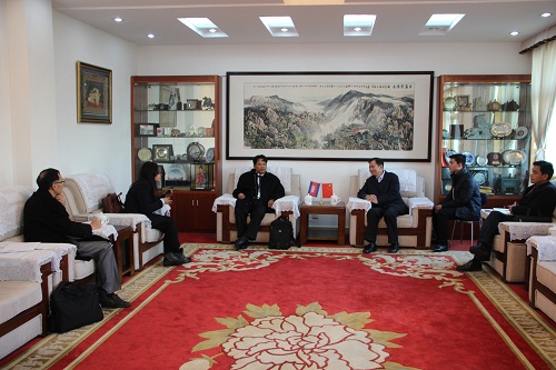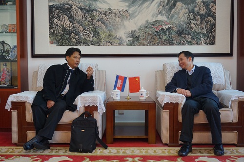 12月10日上午,校党委书记赵伟在行政楼党委会议室会见了来访的柬埔寨王家研究院院长宋独(Sok Touch)和王家研究院孔子学院柬方院长苏碧娜(Vuth Sophakna)一行。副校长杨耀防、孔子学院中方院长夏修龙、国际合作交流处副处长王贤淼等参加了会见。