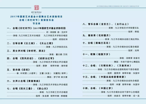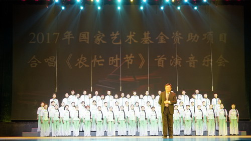 永利yl23411集团官网2017年国家艺术基金小型舞台艺术资助项目合唱《农忙时节》12月8日在九江市文化艺术中心剧院首演。