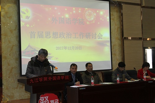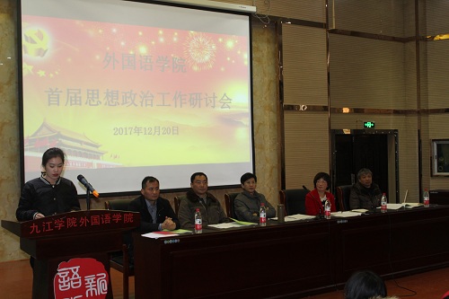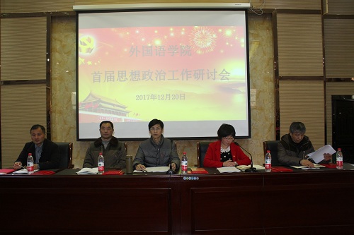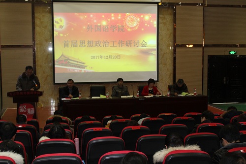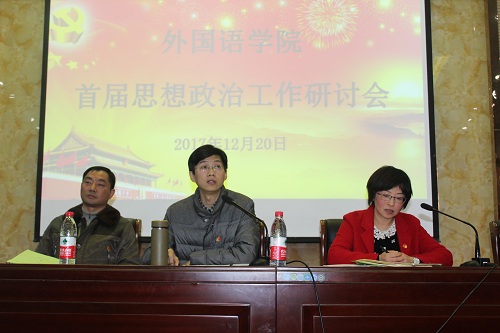 为了深入贯彻党的十九大精神,进一步落实习近平总书记在全国高校思政工作研讨会上的讲话精神,加强学院思政教育研究工作,进一步提高学院思政工作的针对性与实效性,12月20日下午,外国语学院召开首届思政工作研讨会,副校长查振华出席会议,外语全院教师和部分学生代表参加会议,会议由韩琨院长主持。