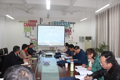根据《九江学院本科教学审核评估自评工作实施方案》安排,12月22日下午,由督查评估专家组组长陈春生副校长带队,校外专家黄晓全教授,化环学院孙德四副院长、电商学院郑孝庭副院长、理学院周玛莉教授等莅外国语学院开展自评自建工作督查评估工作。外国语学院院领导、副科以上干部、教研室主任、实验室主任等参加了督查评估工作会。