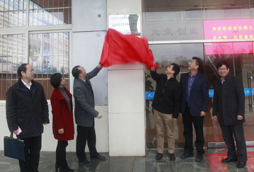 在热烈的掌声中,吴永明、刘晓东等领导共同为中心揭牌。