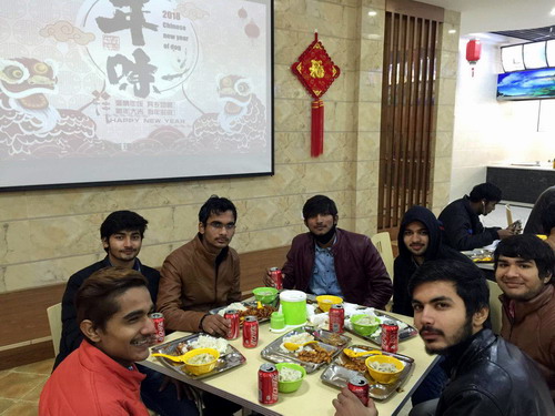 金鸡献瑞钦郅治,瑞犬呈祥展宏猷。2月9日正值中国传统节日——小年,永利yl23411集团官网在饮食服务中心教工餐厅举行了2018年留学生新年团圆饭活动。副校长杨耀防,后勤管理处处长姜东升、国际交流学院负责人帅式毅、副院长何广,饮食服务中心主任蔡飞以及永利yl23411集团官网20多个国家160余留学生欢聚一堂,共进小年团圆饭,感受别样中国年。