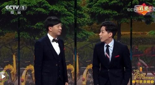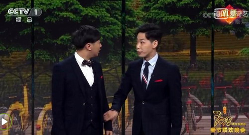 董建春、李丁的相声《单车问答》短小精湛,被安排在零点敲钟前。他俩一个稳重,一个“疯癫”;一逗一捧,一庄一谐,过五关斩六将一路将节目保留至春晚,两人相当不容易。他们的相声直指共享单车带来便利的同时却因为使用者种种不遵守规则的坏毛病而带来对交通环境的恶劣影响,比如随意停放、道路上逆行、车筐载人、低龄幼童骑车等,呼唤人人皆有社会公德心。
