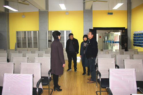 石海舟部长一行首先参观了土建学院“省级高校示范性党员活动室”,土建学院郭玉荣书记重点介绍了土建学院党员十九大精神学习活动、大学生思想政治教育工作和学生党建创新工作情况。土建学院党员活动室分为“三室两厅”,按照“五化”模式打造集议事、教育、服务、文化等综合功能的活动阵地。基本做到了阵地建设立体化、制度上墙系统化、工作资料规范化、成果展示多样化、促进发展实效化。石部长一行边看边听边询问,不时点头肯定,不时提出改进建议。