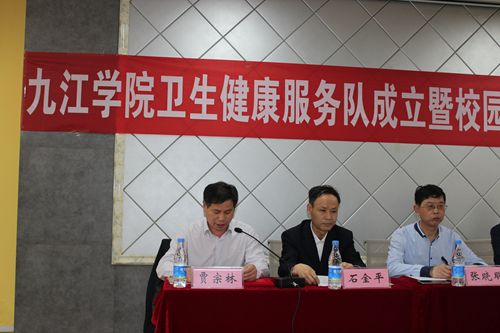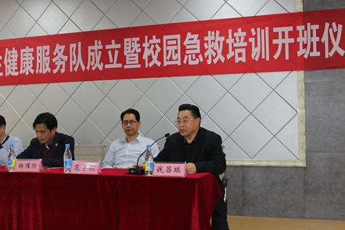 校医院贾宗林院长简单介绍了校园学生卫生健康服务队的组建以及今年学校应急救护员培训的计划,九江市红十字会救护培训部钱昌琪主任针对此次培训工作做出具体的安排并提出要求。