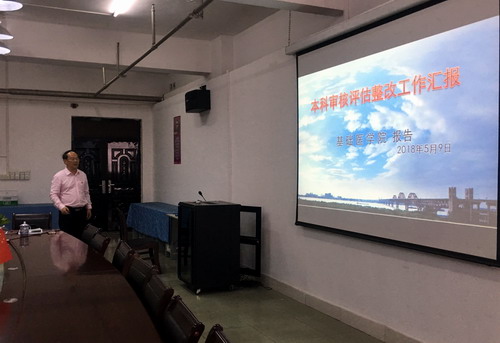 杨耀防副校长一行首先听取了基础医学院车向新院长关于本科审核评估整改工作的汇报,对学院敢于暴露问题加强整改的做法表示肯定,并对学院下一阶段的整改工作部署进行了点评和指导。杨副校长强调,学院要进一步凝炼特色和优势,找出工作的亮点,要加强评估工作的宣传力度,让每一位教师每一名同学都加入到评建工作中来。