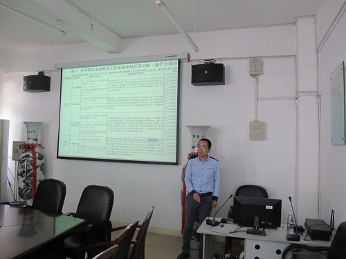 根据学校安排,5月10日下午,学校本科教学审核评估第四督查小组马军、黄冬久、邓悝在副校长纪岗昌为组长的带领下,一行4人来到化环学院开展本科教学审核评估督查工作。化环学院党政领导、科室负责人、教研室主任及相关老师参加了本次评估督查汇报会。