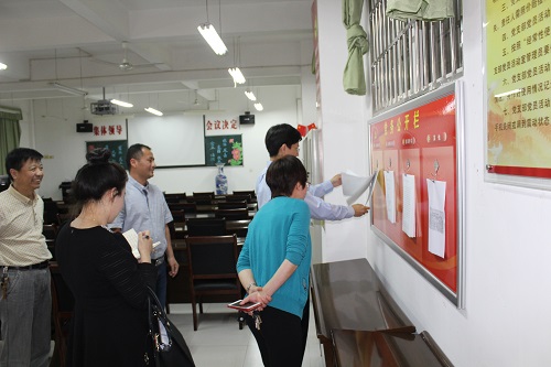 汇报结束后,督查组一行随机抽查了教师上课情况,深入教室观看了李超老师、公佳颖老师的课,并鼓励老师们努力提高学历。并走访了评估办公室、实训室,检查了教学资料准备情况,抽查了教案、试卷、毕业论文、教学大纲及教研室活动工作记录本、听课记录等。