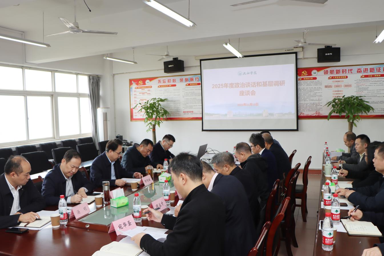 为深入贯彻落实省委关于开展政治谈话、加强对“一把手”和领导班子监督的有关部署要求,调研了解各二级学院学科建设和社会服务工作情况,进一步压实基层党委管党治党政治责任,切实以高质量党建引领高质量发展,11月13日,校党委书记李明斌在竞知楼902B会议室,主持召开2025年度政治谈话和基层调研座谈会。校党委委员、组织部部长杨杰参加座谈。