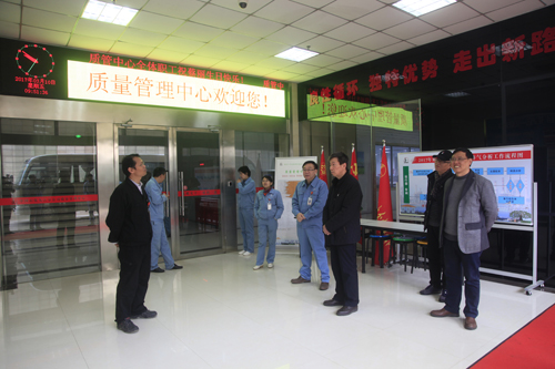 冯部长一行首先参观考察了九江石化展示厅、生产区1号门、质量管理中心党建活动室、EAP活动室、色谱分析室、南区休闲广场、老年大学大学广场等地,并与生产一线管理人员进行交流,听取了关于企业党建、政治理论学习、企业文化建设、文明创建等方面的经验介绍。