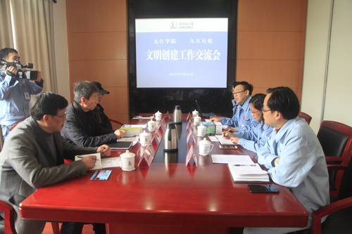 参观结束后,双方在石化大厦5号会议室举行了交流座谈会。熊副部长介绍了九江石化文明创建工作的经验和成效,冯健部长介绍了九江学院近年来的改革发展情况,欢迎熊副部长到九江学院指导宣传思想和文明创建工作。双方还就文明创建的具体工作进行了深入细致的交流。