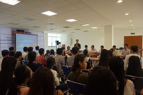 在特区大会议室里,李超主任通过PPT向大家介绍了经济特区的发展现状和规划,李主任说,西港经济特区目前有一百多家企业入驻,其中多数为中资企业,整个工业园区对中文人才的需求极为迫切,感谢孔子学院为特区提供了众多优秀的中文人才,希望大家在座的同学努力学好中文,找到适合自己的工作岗位。学员们就岗位需求和企业福利等大家关心的问题向李主任提问,李主任一一作答,王浩老师就企业员工技能培训等问题与李主任进行了沟通和交流。