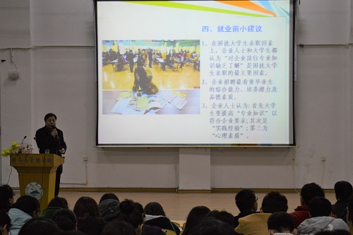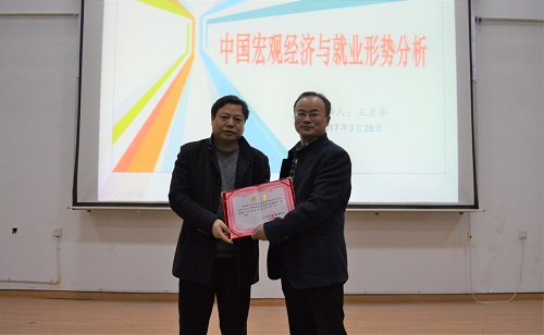 为加深大学生对中国宏观经济形势和就业形势的认识,提高大学生就业创业能力,3月28日晚,九江市城市建设投资有限公司董事长、总经理王卫华在文友楼报告厅开展关于“中国宏观经济与就业形势分析”的讲座。经管学院党委书记花金龙,副院长项益才、高阔出席了此次讲座,讲座由高阔副院长主持。