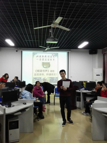 朗读会在土建学院秦华康同学带来的慷慨激昂的《九江赋》中拉开序幕,诚如他所说的:后学子弟,来自九州,缘分所致,齐聚九江宝地,江西名府,白鹿书香,一展斯地尽美!