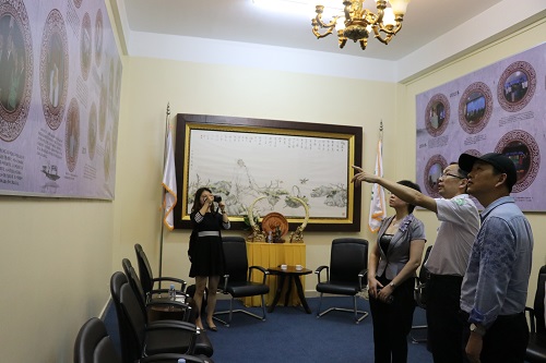 夏修龙院长向客人介绍了柬埔寨王家研究院孔子学院的发展历程,他说,在中国国家汉办、中方合作院校九江学院和柬埔寨各界的大力支持下,柬埔寨王家研究院孔子学院得到了很快的发展,培养了一大批汉语人才,为柬埔寨民众提供了更好的就业机会。