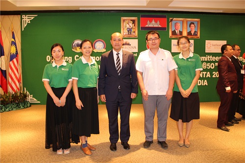 4月3日,第三届东盟旅游委员会开幕式暨2017年吴哥窟宋干节宣传大会在柬埔寨旅游胜地暹粒省隆重召开,会议由柬埔寨旅游部与柬埔寨青年联合会等部门主办。旅游部国务秘书题詹达阁下(H.E.Tith Chantha)、青年会会长洪玛尼阁下(H.E.HUN Many)、暹粒省旅游厅长鲍比瑟阁下(H.E.POV Piseth)等领导莅临会议。柬埔寨王家研究院孔子学院暹粒吴哥高中孔子课堂刘振应邀参加。