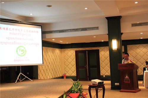 柬埔寨旅游部副总局长洪昆隆先生(MR.CHHAY KHUN LONG)就《柬埔寨旅游业关于“China Ready”的白皮书》进行了具体说明。孔子学院吴哥高中负责人刘振老师在会上介绍了柬埔寨孔子学院中文导游班的有关情况。