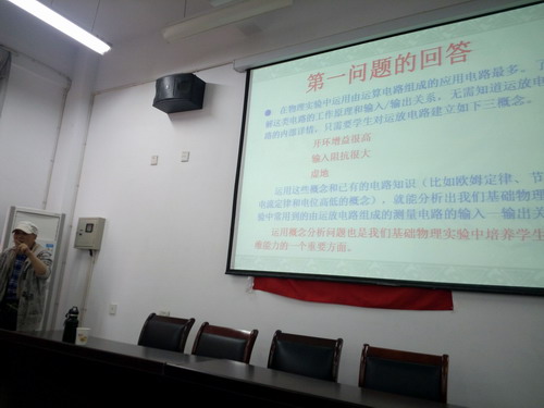 朱教授这次为理学院师生分享了《基础物理实验教学中的新概念与实践》、《纤维光学原理、测量技术与应用》两场讲座报告。朱教授分享了多年从事的普通物理实验教学内容现代化改革研究工作心得。朱教授在这项研究工作中开发了一系列具有全新理念、体现现代科技成就和基础与应用相结合特色的新型物理实验题目、首创相应的配套仪器和撰写出版相应的教材。同时朱教授分享了他的主要著作有《纤维光学—原理及实验方法》,这是在全国第一个为物理系光学专业学生开设出了《纤维光学》。