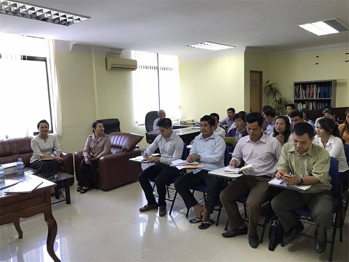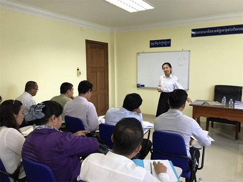 4月24日上午,柬埔寨王家研究院孔子学院国会参议院联络与监察部中文班正式开课。柬埔寨国会参议院联络与监察部国务秘书(副部长)索皮克达维(Ms.Sopheak Thavy)女士参加第一课的听课。柬埔寨王家研究院孔子学院公派教师李玥老师负责柬埔寨国会参议院联络与监察部中文班的课程。