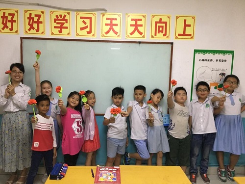 文化之家汉语中心的志愿者老师们根据学生的年龄特点,教高年级学生做手工制作,引导孩子们通过折、剪、画制作了郁金香、康乃馨、贺卡等作为节日礼物送给自己的母亲,同时嘱咐学生要在“母亲节”这天向母亲问侯,并在平时帮助母亲做力所能及的事情 。