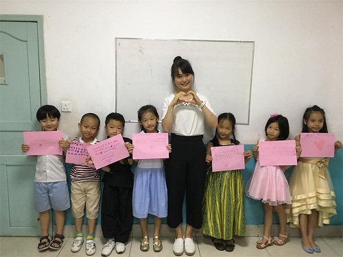 志愿者潘老师和学生漂亮的贺卡