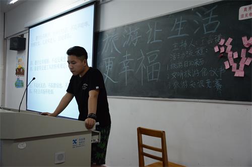 5月19日,旅游与国土资源学院各班在竞知楼开展以“旅游让生活更幸福”为主题的丰富多彩的“中国旅游日”系列活动,加深同学们对旅游日的了解,对“中国旅游日”宣传起到积极作用,同时也对同学们文明出行起到良好的教育作用。