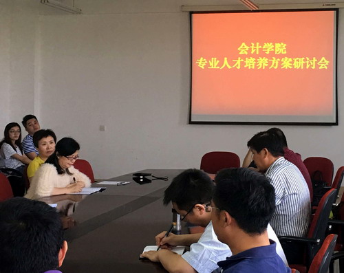 蔡报纯副院长对本次研讨相关工作做具体部署和安排,同时总结了学院现有的三个本科专业(会计学、财务管理及审计学)的人才培养方案执行情况和存在的问题。