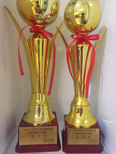 永利yl23411集团官网体育学院网球队成立于2007年,经过十年的发展,在省内及九江市的各类比赛中取得了一定的成绩,这是永利yl23411集团官网近年来重视发展网球运动的成果。近年来学校领导特别重视网球运动在学校中的普及推广,专门成立了九江学院网球协会,方便永利yl23411集团官网教师及学生参与网球运动,体育学院各级领导及各科室同仁对网球队的发展大力支持也极大的促进了学生学习网球的热情。体育学院拥有一支专业的网球教练团队,主教练叶静具有十多年的网球教学经验,教练胡哲铭、虞智杰是网球专业研究生毕业,大大增强了体育学院网球教学力量,再加上网球队队员的刻苦训练,取得如此成绩可以说是厚积薄发的结果,更是体育学院重视运动竞赛的结果。