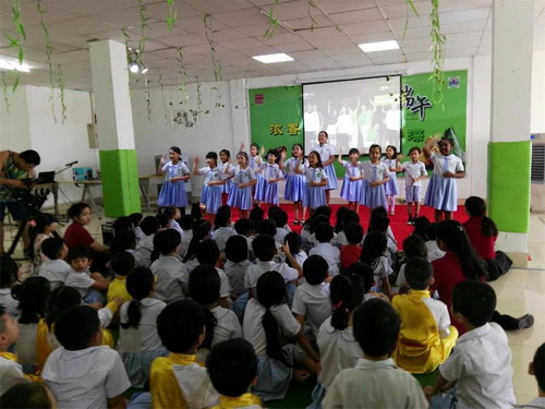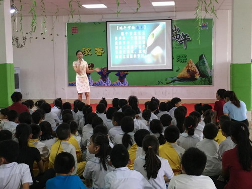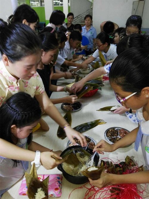 文化之家汉语中心的负责人潘红梅老师为大家讲述了端午节的由来,关于屈原的传说,以及端午节吃粽子、赛龙舟、悬艾草、系彩绳等端午习俗。为纪念伟大的爱国诗人屈原,中华国际学校的音乐班成员还给活动现场带来了童声版的《国家》。音乐班的同学们声情并茂地进行演唱,现场掌声不断。