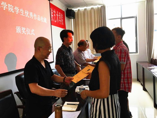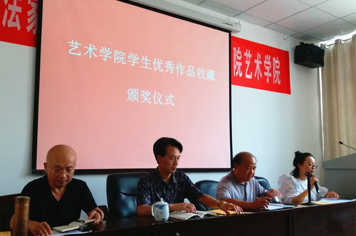 吴维勇院长作了讲话,他肯定优秀学生作品收藏的重要性,强调艺术楼中将会有专门的收藏室保留学生的优秀作品。王春生书记在讲话中对获奖学生表示了祝贺。认为这些优秀作品将会成为后来的学生作为范本,鼓励他们更好的进行专业创作学习。