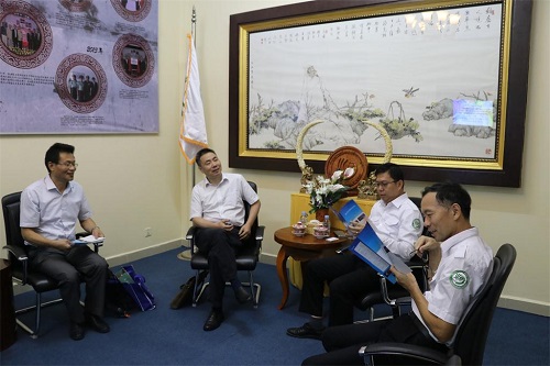 6月26日上午,浙江交通职业技术学院季永青院长一行4人访问了柬埔寨王家研究院孔子学院,柬埔寨王家研究院孔子学院院长谢莫尼勒(H.E.CHEA Munyrith)和中方院长夏修龙热情接待了季永青院长一行,双方在孔子学院会议室进行洽谈交流。