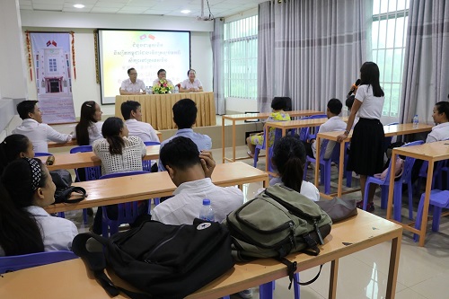 为进一步激发学生对汉语学习的兴趣,促进学生对汉语及中华文化的了解,6月26日下午, 柬埔寨王家研究院孔子学院举办赴中国留学学生座谈会。柬埔寨王家研究院孔子学院院长谢莫尼勒(H.E. CHEA Munyrith)、中方院长夏修龙、院长助理陈晶雯以及从中国留学返回柬埔寨的15名留学生代表参与了此次座谈会。