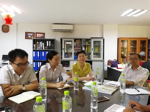 柬埔寨孔子学院亚欧大学中文系负责人邢慧莹老师向专家们介绍亚欧大学中文系的情况,亚欧大学中文系老师针对教学中的问题和困难向两位专家请教。马国彦副教授和高慧宜副教授对亚欧大学中文系的工作给予了充分肯定,对中文系所取得的成绩表示钦佩,对老师提出的有关课程设置、教材使用、教学方法等方面的问题一一进行了指导,使中文系的老师受益匪浅。