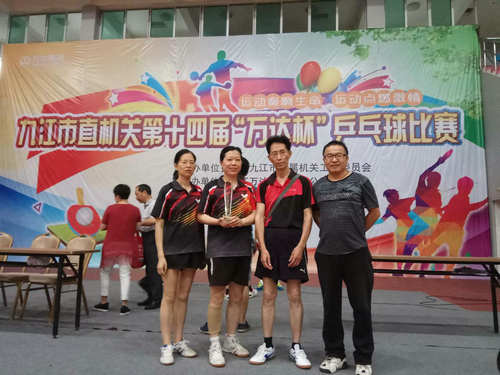 7月7日至9日,九江市直机关第十四届“万达杯”乒乓球比赛在市供电公司明珠俱乐部举行,来自市直41支代表队、近200人参加了本次比赛。永利yl23411集团官网派出了邓炯、邓学枝、张浩、卢小澍、程平孙5人组成的队伍参加了混合团体、男女单打和县处级男子单打4个项目的角逐。