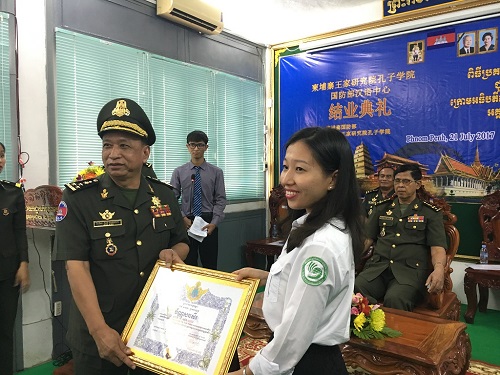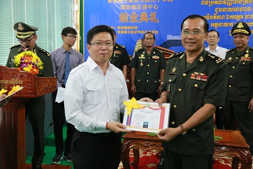 柬埔寨孔子学院国防部汉语中心举行首届汉语班结业典礼