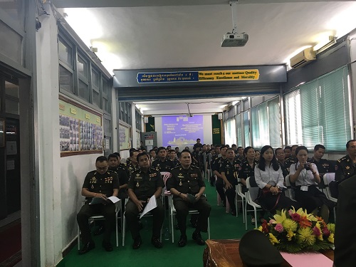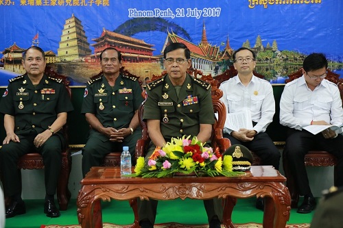 柬埔寨国防部军队服务部副部长、军民事务局局长桑萨仁将军(SAO Saroeun)介绍了汉语班开设和教学情况,希望孔子学院在国防部开设更多的班级。