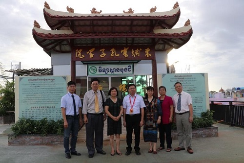 7月23日下午,广西区委党校副校长、广西行政学院副院长唐秀玲率领的代表团一行6人访问了柬埔寨王家研究院孔子学院,受到柬埔寨孔子学院院长谢莫尼勒(H.E. CHEA Munyrith)、中方院长夏修龙和院长助理陈晶雯的热烈欢迎。