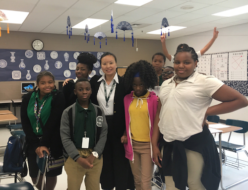 在萨凡纳州立大学孔子学院的不懈努力和国家汉办师资处的大力支持下,孔子学院在萨凡纳市新设立的两所公立中学汉语教学点——德雷纳中学(DeRenne Middle School)和迈尔斯中学(Myers Middle School)于美国当地时间8月23日顺利开课,共有160名学生选修了汉语课程,在老师们的带领下学习汉语,探索中国文化。