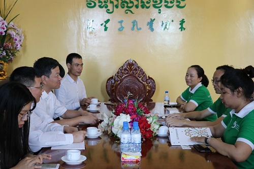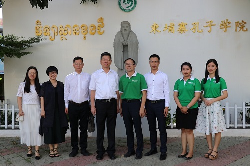 夏修龙院长向代表团介绍了孔子学院自2009年揭牌以来的发展过程和办学情况,强调了孔子学院在柬埔寨增进中柬人民沟通和交流中的桥梁纽带作用。