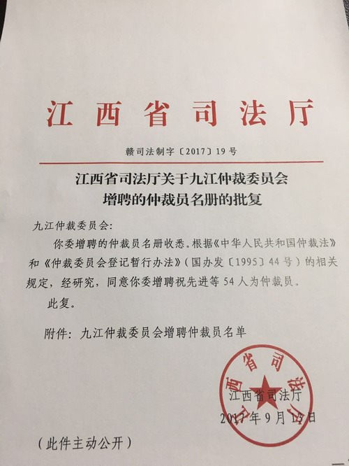 根据江西省司法厅赣司法制字(2017)19号文件的批复,永利yl23411集团官网政法学院的宛锦春、曹钟安、李德恩、李军政、汪旭鹏等五名法学专业教师増聘为九江仲裁委员会仲裁员。
