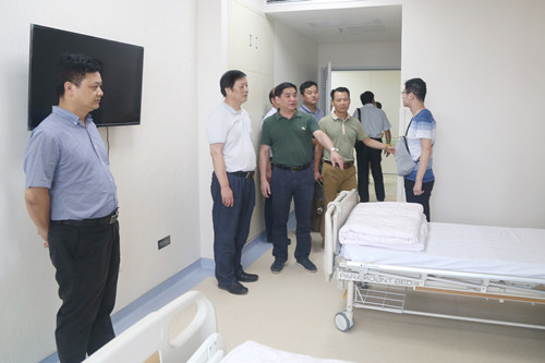 座谈会后,张院长一行到省肿瘤医院在建项目的施工现场,重点参观了该院新大楼已装修成型的病区走廓、电梯前厅、护士站、医生办、病房标准间以及在建的手术室等处。张院长一行详细询问了在建大楼的设计布局、装修材料、设施功能等情况。