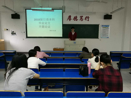 为加强毕业论文管理,进一步提高毕业论文质量,外国语学院日语专业于9月28日下午在香远楼419举行了2018届本科毕业论文开题论证会。