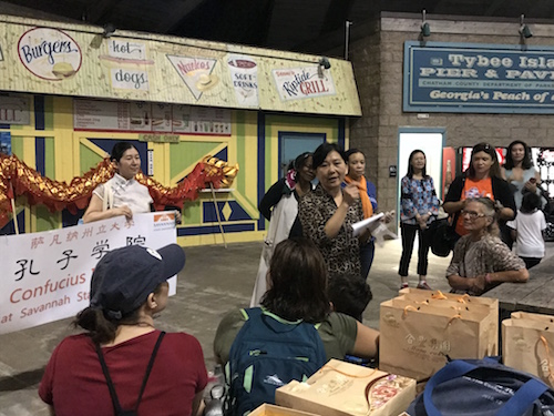 10月6日晚,美国萨凡纳州立大学孔子学院在萨凡纳市泰比岛举办了“海上生明月,天涯共此时”中秋庆祝活动。近百名萨市民众及孔子学院学生参加了此次活动。
