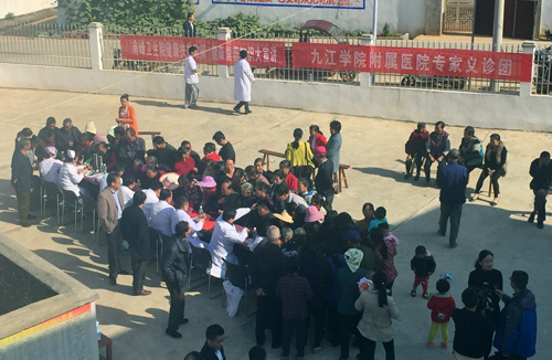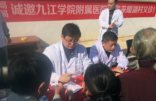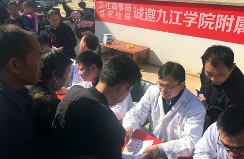 10月24日,作为临床医学院/附属医院“2017年扶贫日巡回义诊”第二站活动,农工民主党九江学院总支组织临床医学院/附属医院眼科、普外科、心血管科、内分泌科、骨科、疼痛科、神经内科等科室的11名专家党员,赴都昌县南峰镇暖湖村开展义诊,活动由欧阳庆雯副院长带队。