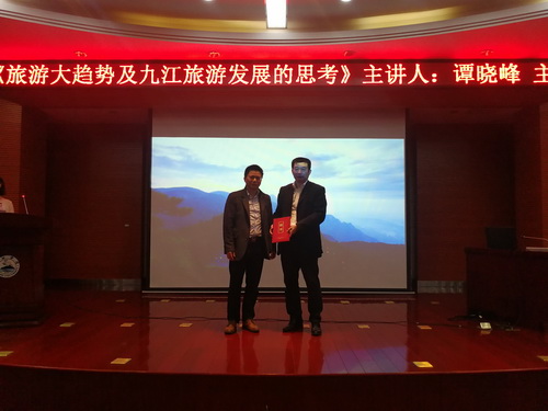 九江旅发委主任谭晓峰应邀到旅游与国土资源学院作专题讲座