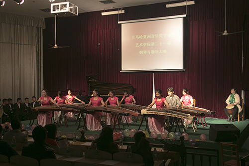 比赛在弦乐学生表演的古筝九重奏《天山之歌》中拉开了序幕,钢琴、民乐、管弦乐等乐器依次展示于观众的面前,在同学们淋漓尽致的演奏中掀起了大赛的一层层高潮,收获了现场观众连绵不断的掌声。