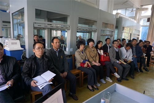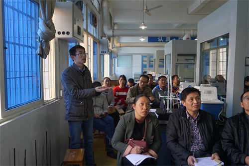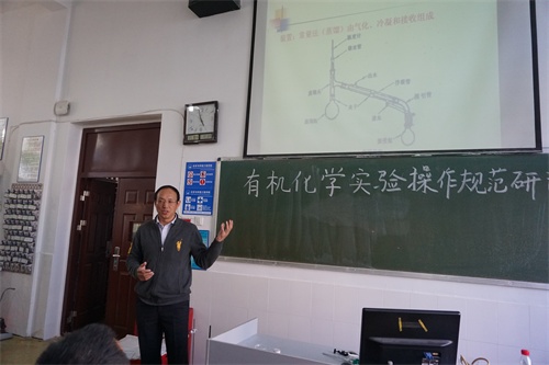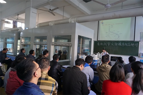为进一步深化课程改革,积极探索新形势下教研活动的开展,加强教学质量监控过程管理,切实提高学院教学质量水平。11月8日下午,化环学院在实验楼有机化学实验室举行“有机化学实验操作规范研讨”示范性教研活动,化环学院党委书记刘新强、副院长曹小华、基础化学教研室教师参加,示范性教研活动由基础化学教研室主任杨平华博士主持,学院全体教师观摩。